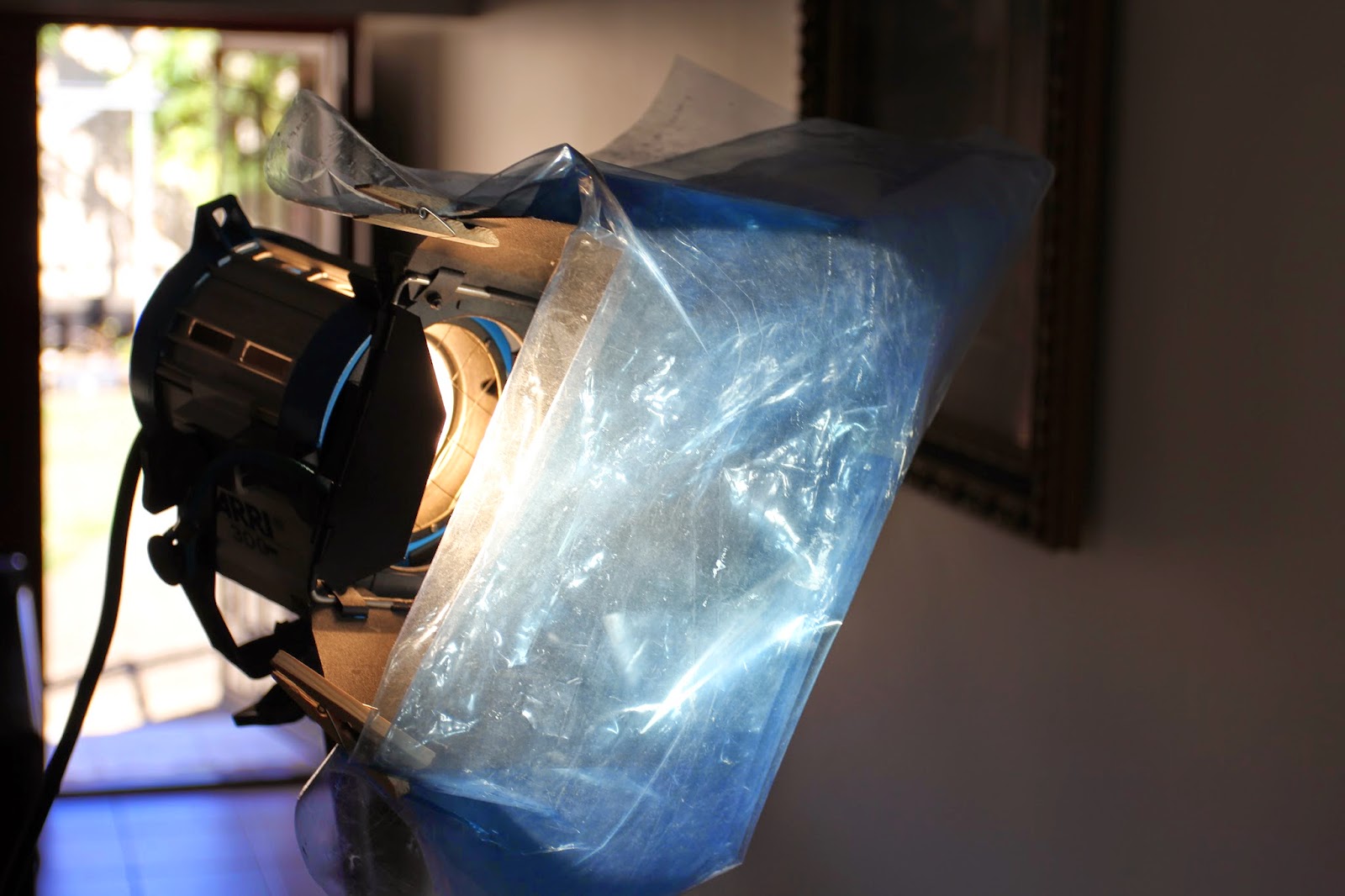 The 300 watt Fresnel light was also used on set. We actually had a kit with 650 watt lights and a 1K (1000 watt) but we only ended up using the 350 watt. These light are tungsten and also heat up quite a bit (gloves are a must). I love the quality of light you get from these but they can be rather cumbersome, but the heat does keep you warm in the winter (which is the current season in Australia). Though they are tungsten you can change the colour temperature with coloured gels to make them daylight or various other colours.